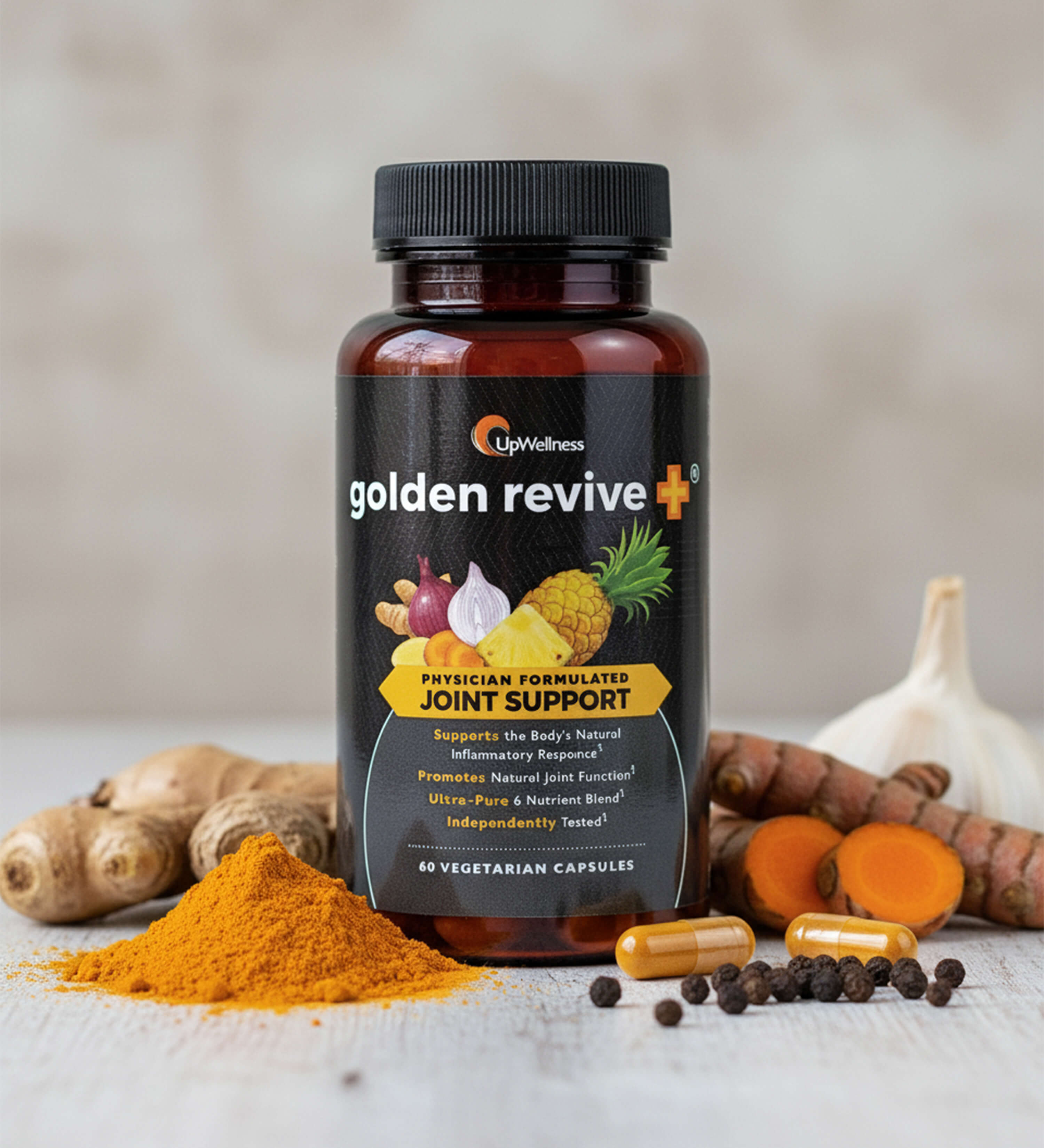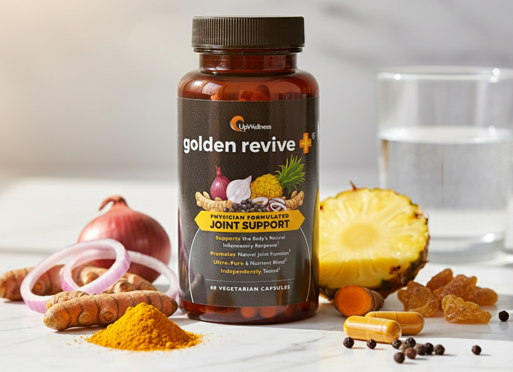 Golden Revive + is expertly formulated with clinically backed ingredients like Curcumin BCM-95®, Boswellia, and Bromelain that work together to target inflammation, reduce muscle tension, and calm nerve pain naturally — helping your body restore mobility and flexibility for lasting, pain-free movement.