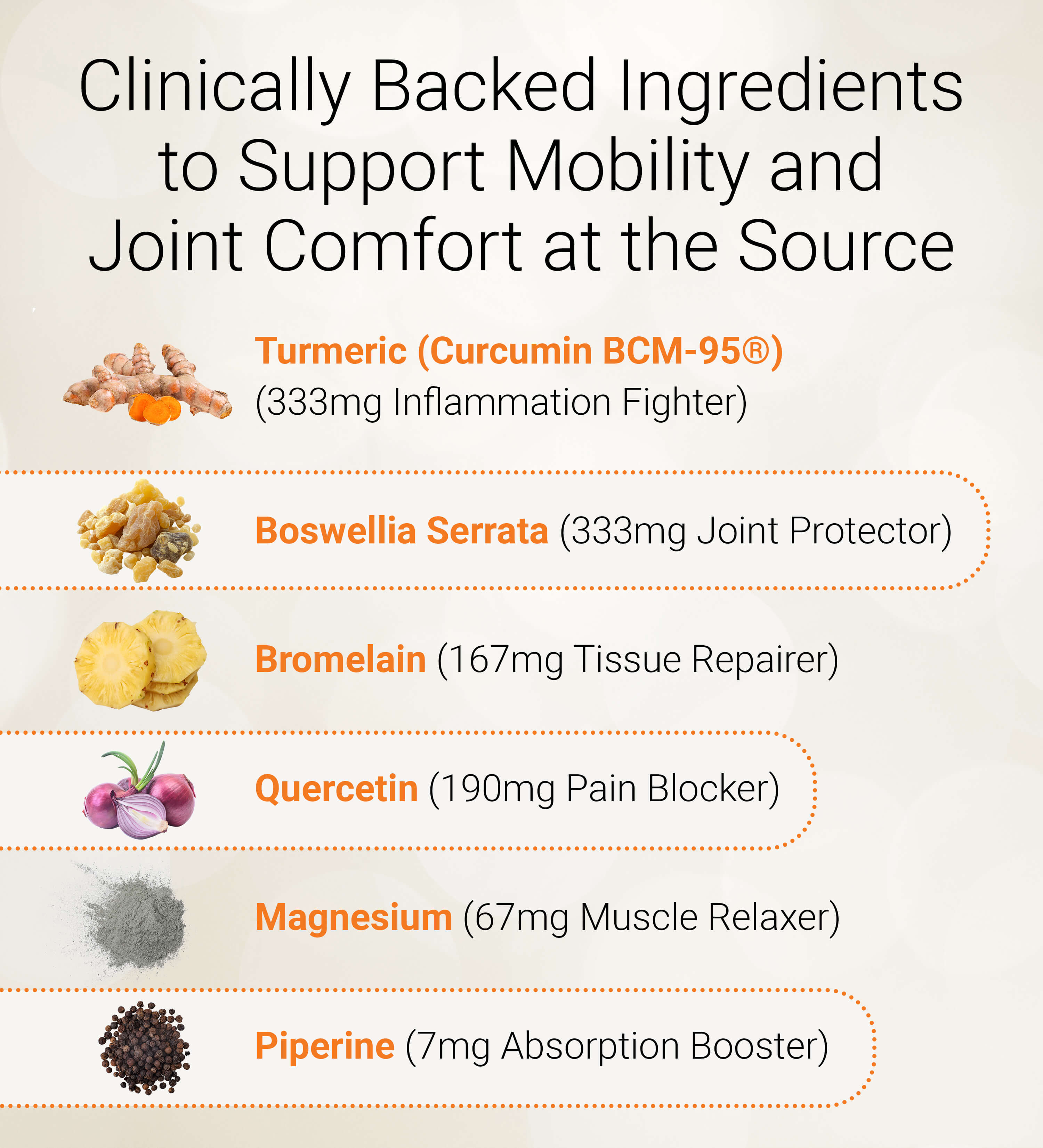 The “pain blocker” — a potent antioxidant that helps shut down pain-signaling chemicals and protect joints from oxidative stress and stiffness.
