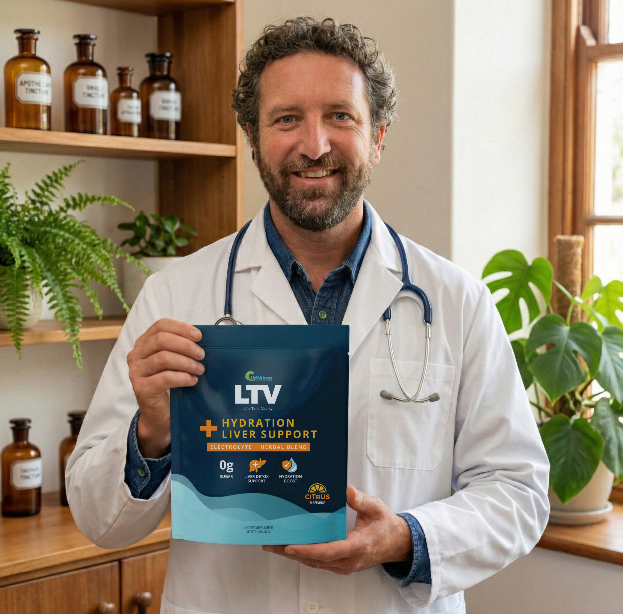 Plain water can't hydrate your liver cells without the mineral "keys" (electrolytes) that unlock cellular gates. Without sodium, potassium, and magnesium in the right balance, water just passes straight through you. You end up running to the bathroom every hour while your cells stay bone-dry. LTV provides those keys PLUS the nutrients that help cells hold hydration and use it for the metabolic work your liver needs to do. It's the difference between pouring water through a strainer versus actually filling a container.