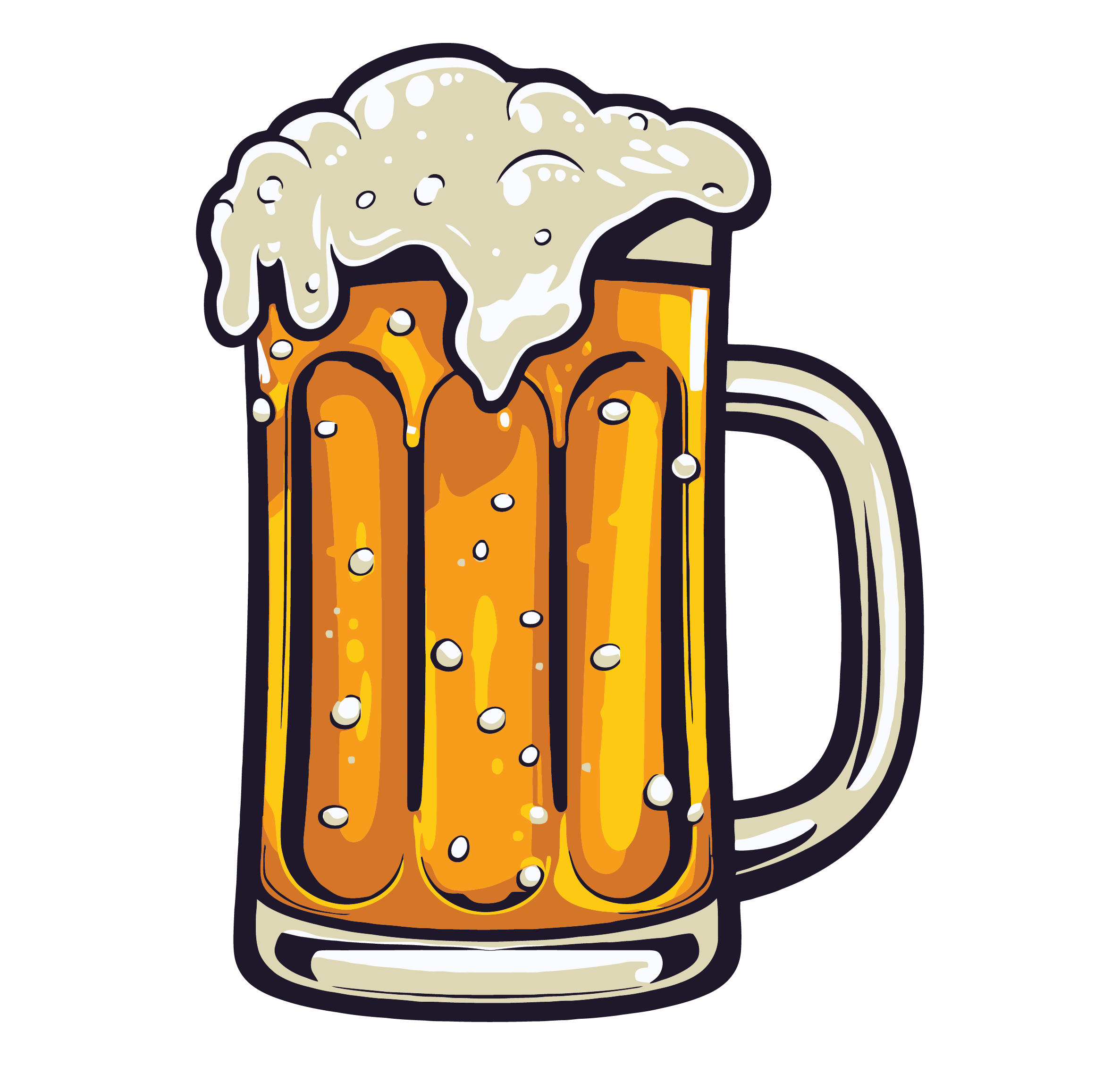 Outlined flask with orange magnifying glass overlapping it.