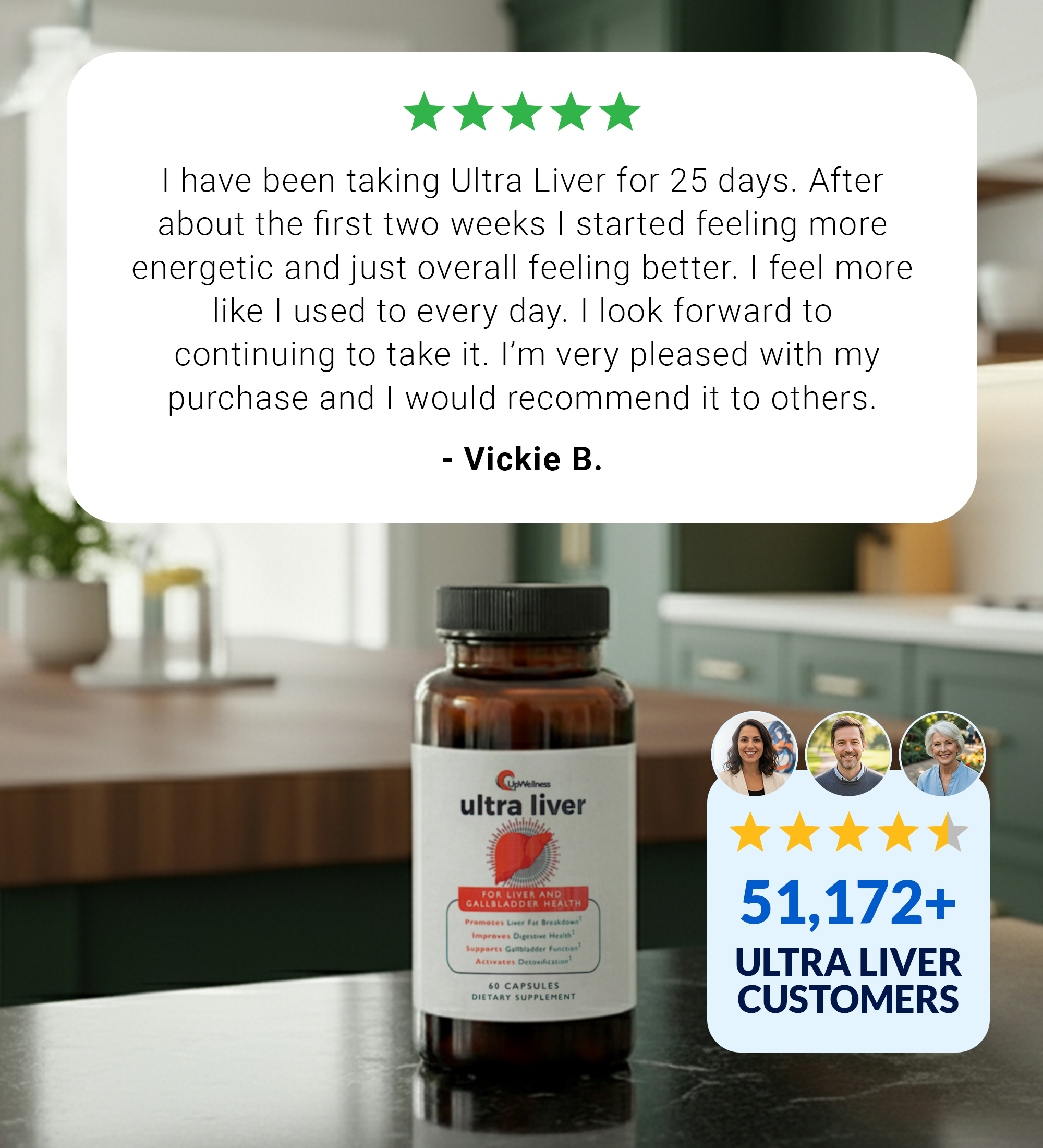 Ultra Liver helps your liver cleanse, detoxify, and restore its natural balance — so you can enjoy more energy, easier weight control, and peace of mind about your health.